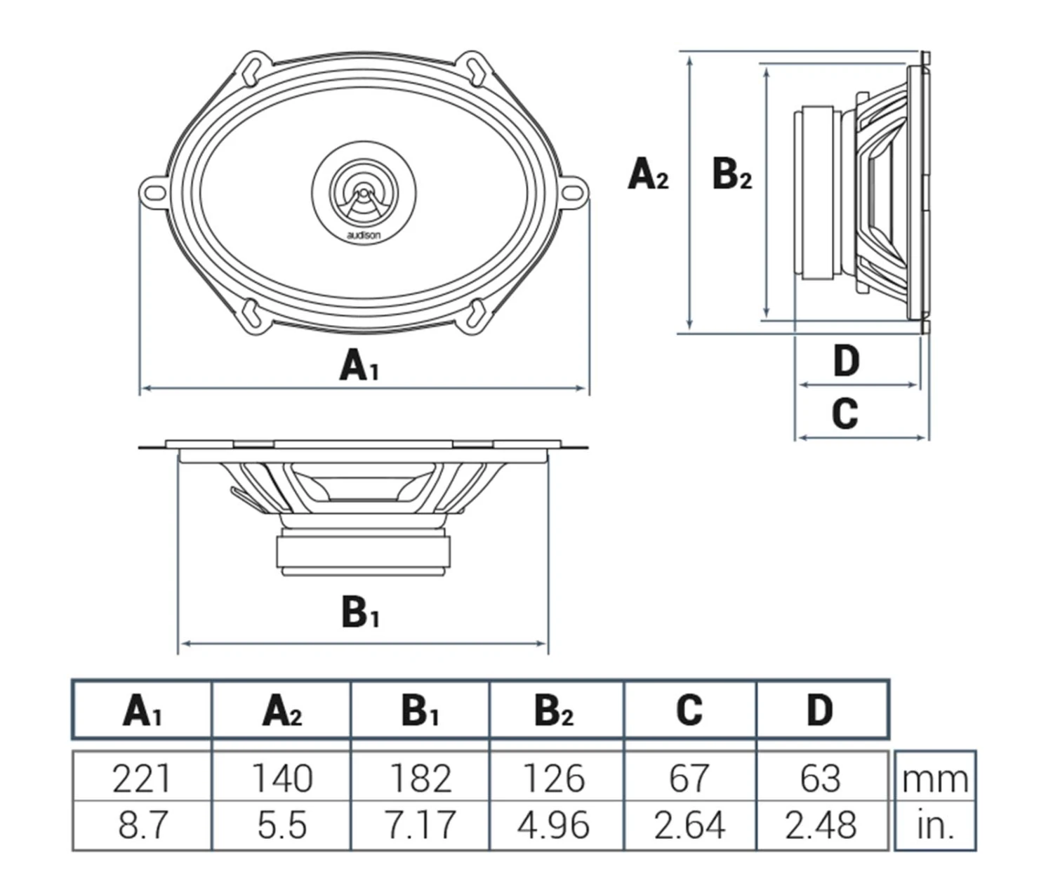 - Optimierte Einbautiefe für OEM-Integration dank konzentrischen Hochtöner und dem flachen Korb.