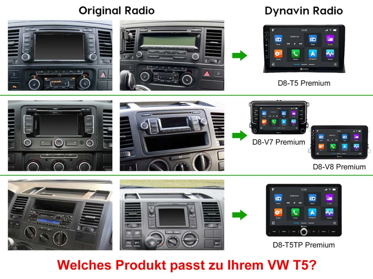 - Rückfahrkamera bereit: Kompatibel mit allen Aftermarket-Rückfahrkameras (mit Cinch Anschluss) und VW Originalkameras durch optionalen Adapter DVN-VCR-L (Keine Lenkeinschlagslinien von VW Originalkameras) oder DVN-VCR-H (mit Lenkeinschlagslinien von VW Originalkameras).