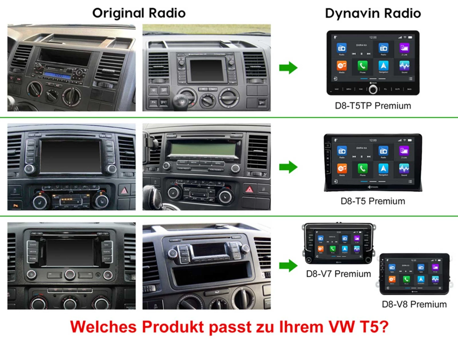 - Rückfahrkamera bereit: Kompatibel mit allen Aftermarket-Rückfahrkameras (mit Cinch Anschluss) und VW Originalkameras durch optionalen Adapter DVN-VCR-L (Keine Lenkeinschlagslinien von VW Originalkameras) oder DVN-VCR-H (mit Lenkeinschlagslinien von VW Originalkameras).