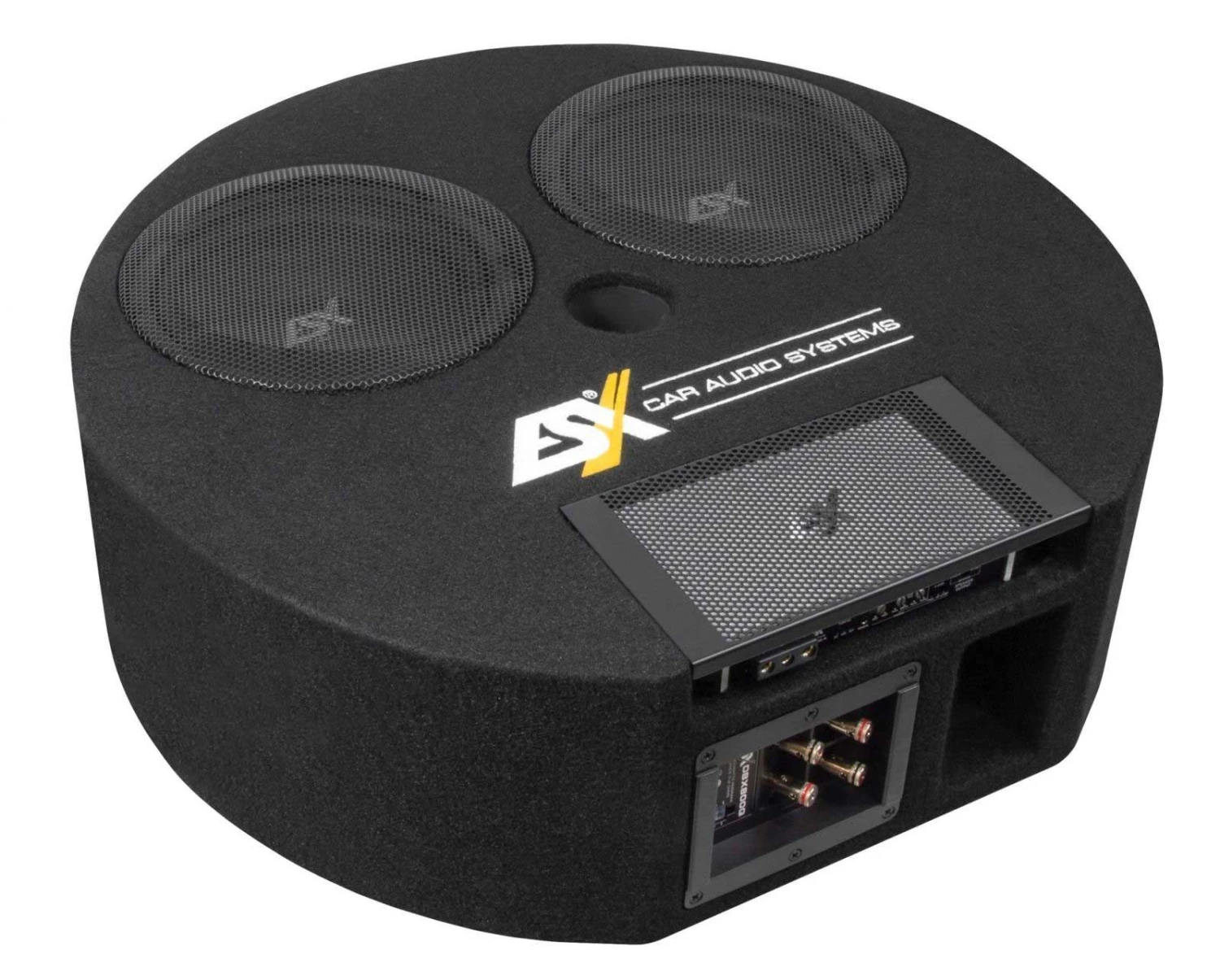 Die neuen DBX Modelle eint nicht nur die Besonderheit, dass sie durch die üppige Bestückung mit gleich zwei Subwoofern enorm viel Bass liefern, sondern man kann sie dank ihrer Konstruktion auch als Problemlöser bezeichnen, da sie keinen oder nur wenig Platz im Kofferraum beanspruchen. Ein weiterer Clou ist, dass sie entweder passiv oder sehr einfach durch den Einbau eines ESX QM Verstärkers in eine dafür speziell vorgesehene Aussparung auf aktiven Betrieb umgerüstet werden können. Die Idee spart nochmals Platz und sieht obendrein auch noch sehr schickt aus. Die Subwoofer des DBX600Q Modells sind nicht mit in dieser Klasse üblichen 25 mm, sondern gar mit 38 mm großen Schwingspulen ausgestattet, welche dadurch sehr hohen Belastungen standhalten. Das DBX600Q System kann entweder im Kofferraum liegend platziert werden, oder, falls vorhanden, in einem doppelten Kofferraumboden. Um die Einbauhöhe zu reduzieren, kann man die Montagefüße abnehmen und die Box drehen. Alle Modelle der DBX Serie sind mit einem QUICK CONNECT Anschlussterminal ausgestattet, mit dem der Anschluss per Molex-Steckverbindung im Handumdrehen zu bewerkstelligen ist. Zusätzlich bietet das neu entwickelte Multi-Terminal auch die Möglichkeit, via Push-Pin handelsübliche Verstärker anzuschließen. Die beiden DBX Gehäuse-Subwoofer kann man als echte Problemlöser bezeichnen. Die DBX600Q macht sich als moderne Downfire Box imKofferraum fast unbemerkbar, während die DBX800Q perfekt für eine Reserveradmulde geeignet ist. Der Clou an beiden Boxen: Beide habenein extra Fach, um eine der drei kompakten QM Verstärker zu integrieren. Somit kann z.B. die Kombination aus DBX800Q und der 4 Kanal QM400.4 eine komplette Anlage befeuern, und dies quasi unsichtbar.