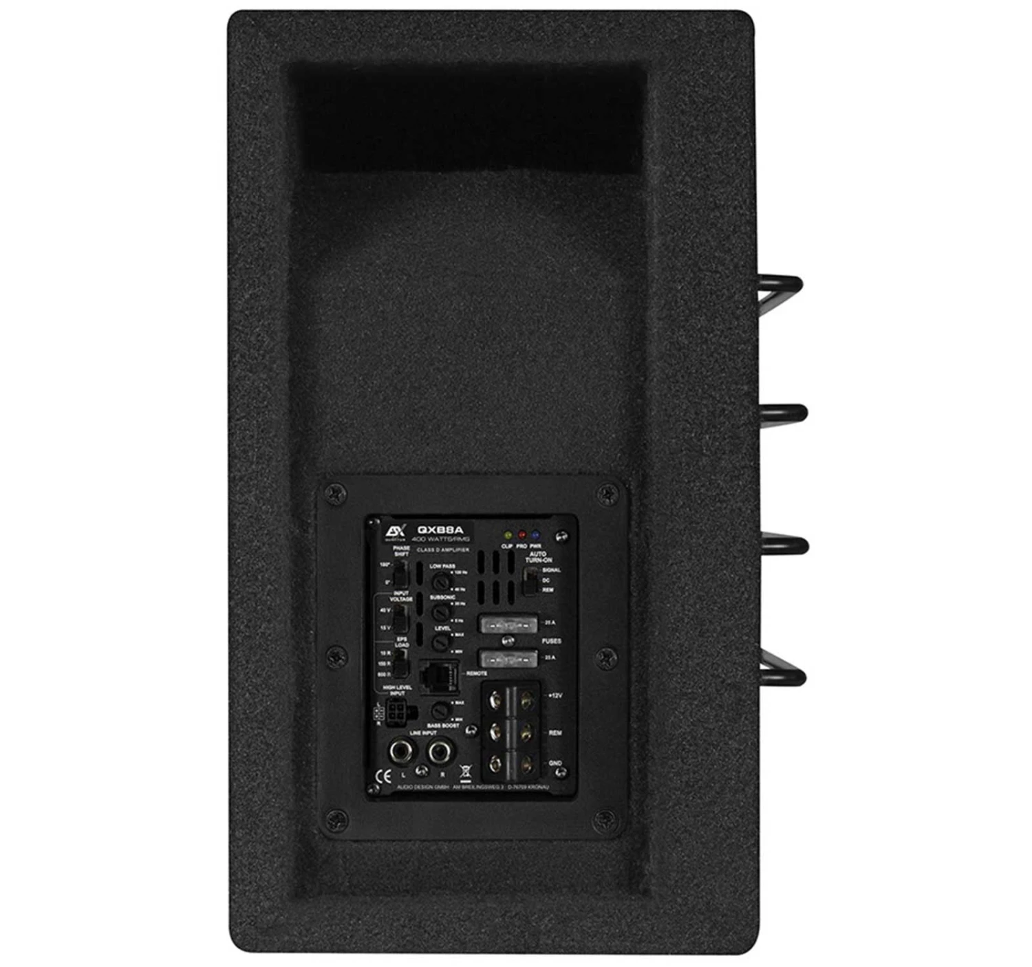 Für gute Subwoofer-Systeme werden immer kräftige Zusatz-Verstärker benötigt. Wem die Installation eines externen Verstärkers zu aufwendig ist oder keinen Platz hat, greift zu Aktivvarianten, die bereits werksseitig verbaute Verstärker haben. Doch Vorsicht, oft werden aus Kostengründen – auf den ersten Blick für Laien nur schwer erkennbar – leistungsmäßig eher schwache oder veraltete analoge Endstufen eingebaut. Manches Mal sind sogar einfachste 12 Volt Brückenchips zu finden, die nicht mehr leisten als einfache Autoradios. ESX geht hier einen anderen Weg und integriert hoch moderne Class D Verstärker-Module, die bis zu 400 Watt/RMS Ausgangsleistung mobilisieren können. So bestückt liefern die sehr kompakten QUANTUM QXB Aktiv-Subwoofer-Systeme extrem hohe Leistungen und Basspegel.