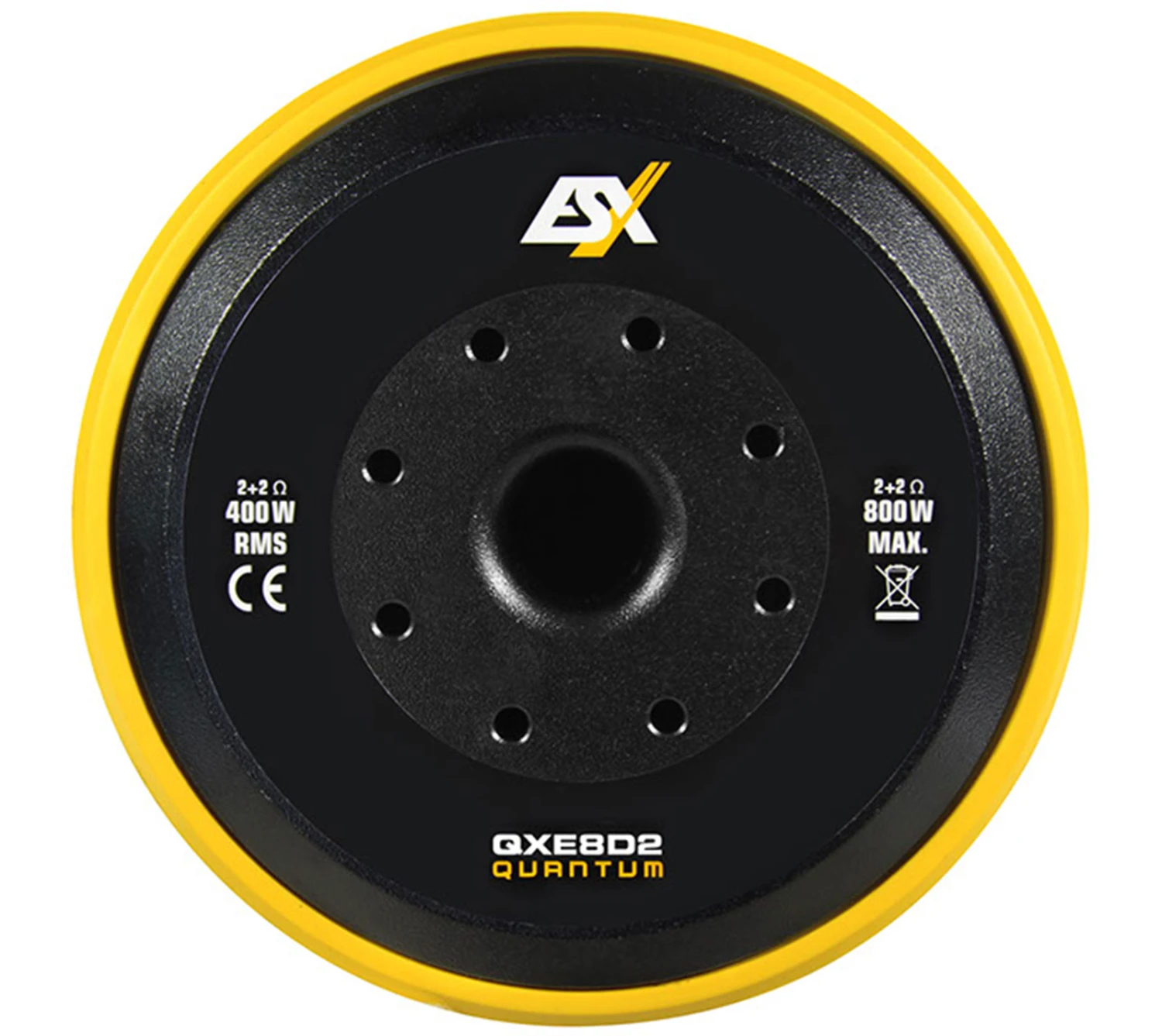 QUANTUM QXE Subwoofer bestechen durch ihre sehr kompakte Bauform. Fast schon zierlich kommt der QXE6D2 Subwoofer rüber, aber mit seinem Aluminium-Druckguss-Korb, den Doppelmagneten mit 2 x 40 oz und der vernähten Sicke signalisiert er: „Vorsicht, es kann sehr laut werden!“ Die beiden größeren Subs haben einen kräftigen 2 x 63 oz Doppelmagneten und genau wie der QXE6D2 eine Polkernbohrung sowie eine belüftete T-Plate für optimale Kühlung. Beim QXE6D2 kommt eine große 2″ (50 mm) Schwingspule mit einer RMS Belastbarkeit von 250 Watt und beim QXE8D2 und dem ganz neuen Modell QXE10D2 sogar eine 2,5″ (64 mm) Schwingspule mit einer Belastbarkeit von 400 bzw. 600 Watt RMS zum Einsatz. Extrem lang gewickelte Schwingspulen von 30 bzw. 36 mm Wickelhöhe erlauben den Woofern einen linearen Hub von +/- 10 mm. Alle drei Modelle haben eine Doppelschwingspule mit jeweils 2 + 2 Ohm. Hiermit können Impedanzen von 1 x 4 Ohm oder gar 1 x 1 Ohm konfiguriert werden. Problemlos können so auch mehrere Subwoofer hintereinander an einem Verstärker betrieben werden.