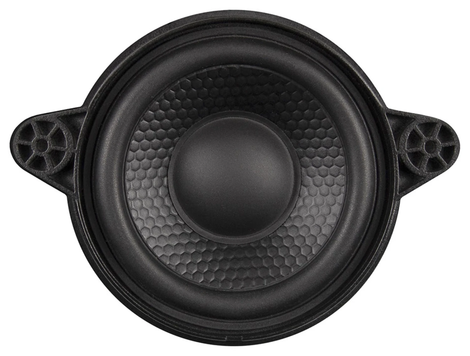 Der Center-Lautsprecher besitzt qualitativ die gleiche faserverstärkte Membran wie der Tieftöner und hat gegenüber dem Original-Center eine deutlich verbesserte Stimmwiedergabe im Mittenbereich, wie sie gerade bei Sprache und Gesang benötigt wird. Selbstverständlich ist der ESX Center-Lautsprecher mit der im Fahrzeug integrierten SOS-Funktion ausgestattet. Im Hochtonbereich kommen bewährte, 25 mm große Neodym-Hochtöner mit Seidengewebe zum Einsatz. Sie spielen bis 24.000 Hz sehr sauber und hoch auflösend. Im Anschlusskabel ist eine 6 dB Kabelweiche integriert, die für sehr saubere Trennung bei 3500 Hz sorgt.