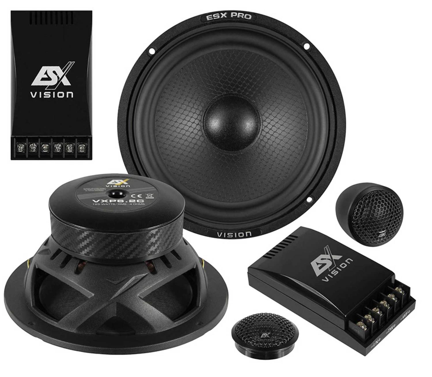 Wer den bestmöglichen Sound in sein Fahrzeug zaubern will, baut sein Wunschsystem idealerweise aus mehreren Komponenten auf. Dies ist eine Aufgabe für Profis, speziell wenn hochwertige Mehrwegesysteme, evtl. mit Mitteltöner, Zusatzsubwoofer oder separate Verstärker zum Einsatz kommen. Genau für so ambitionierte Zwecke haben ESX Ingenieure die High End VISION VXP Komponenten geschaffen, die mit innovativen Materialien, Top-Verarbeitung und exzellenten Parametern aufwarten.