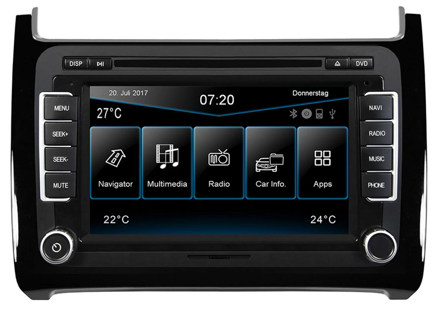 Das Polo 6C Gerät auf i20 Plattform ist als Basisgerät mit Blende in 3 verschiedenfarbigen Varianten lieferbar.