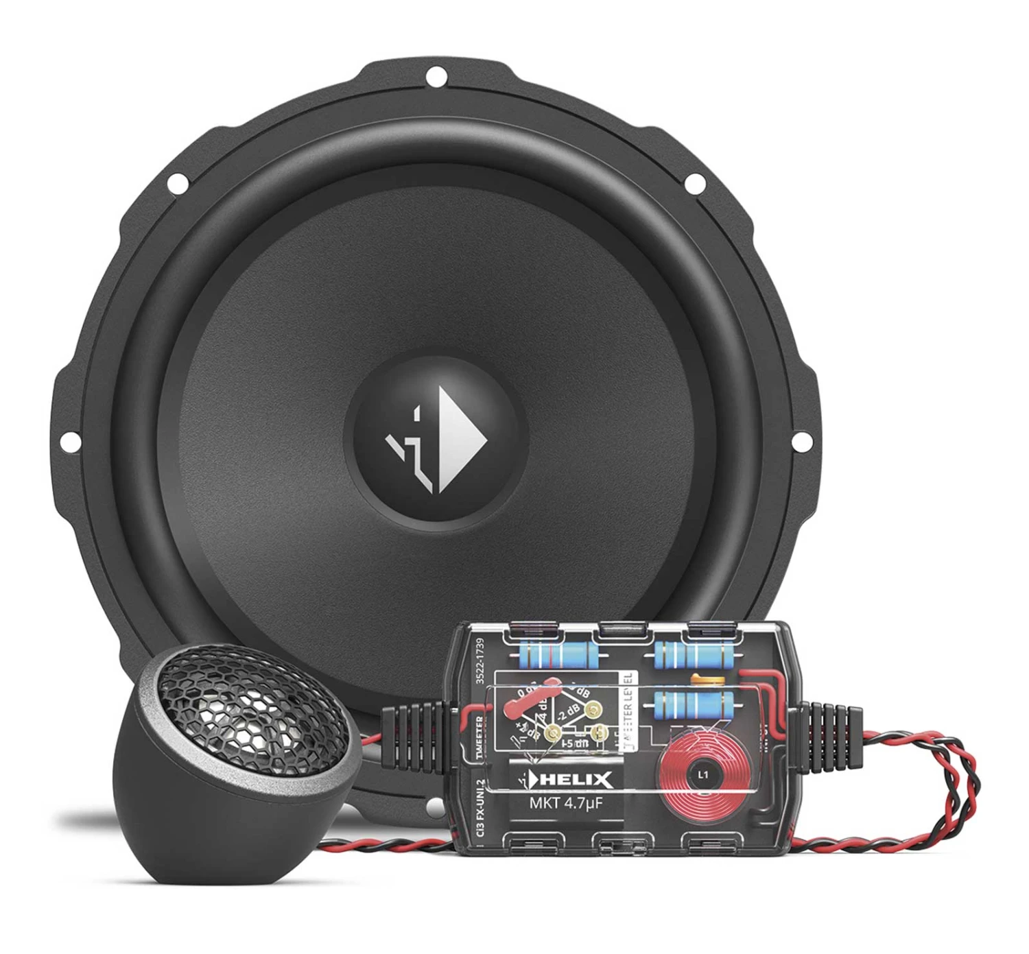 Die Frequenzweiche ist für die optimale Nutzung mit unseren HELIX Compose i3 Komponenten, und somit für die COMPOSE-typische, professionelle Integration in das Fahrzeug, konzipiert. Sie bietet eine 6-stufige Hochtonpegelanpassung mit 12 dB Flankensteilheit zur optimalen Adaption an die Einbauposition sowie einen integrierter Hochtonschutz. Darüber hinaus wurden keine Mühen bei der komplexen Abstimmung der Weiche für eine bestmögliche Aufteilung des Frequenzbandes und ein harmonisches Klangbild gescheut. Dank ihrer kompakten Abmessungen eignet sich die Ci3 FX-UNI.2 perfekt für den Einbau in platzsparenden Installationen und ist für maximale Betriebssicherheit und Minimierung von Einbaufehlern mit unseren COMPOSE Connect und WireKit Technologien kompatibel.