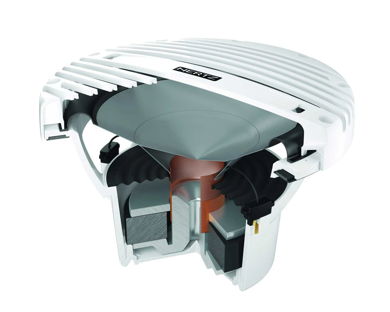 Der Marine-Subwoofer HMS 10 S4-LD-SW von Hertz ist so konzipiert, dass er ohne die Notwendigkeit eines speziellen Gehäuses installiert werden kann und auf jedem Schiff einen kraftvollen und präzisen Bass liefert. Das weiße Sportgitter mit eingebauten LEDs kann leicht entfernt werden, um es mit der perfekten Farbe für Ihr Boot zu lackieren. HMS-Subwoofer sind so konzipiert, dass sie ohne die Notwendigkeit eines speziellen Gehäuses installiert werden können und in jedem Gefäß kraftvolle und präzise Bässe liefern. Das Motor- und Aufhängungsdesign ist für den Hochleistungsbetrieb mit unendlicher Schallwand optimiert und bietet eine lange lineare Hubfähigkeit für eine enorme Leistung bei geringer Verzerrung. Hertz Marine-Subwoofer fügen Ihrem System nicht nur tonnenweise Bassausgabe hinzu, sondern entlasten auch die Hauptlautsprecher von der harten Arbeit, den niedrigsten Frequenzbereich zu reproduzieren, wodurch die Gesamtsystemleistung maximiert wird, für unbegrenzten Schalldruck und Emotionen!
