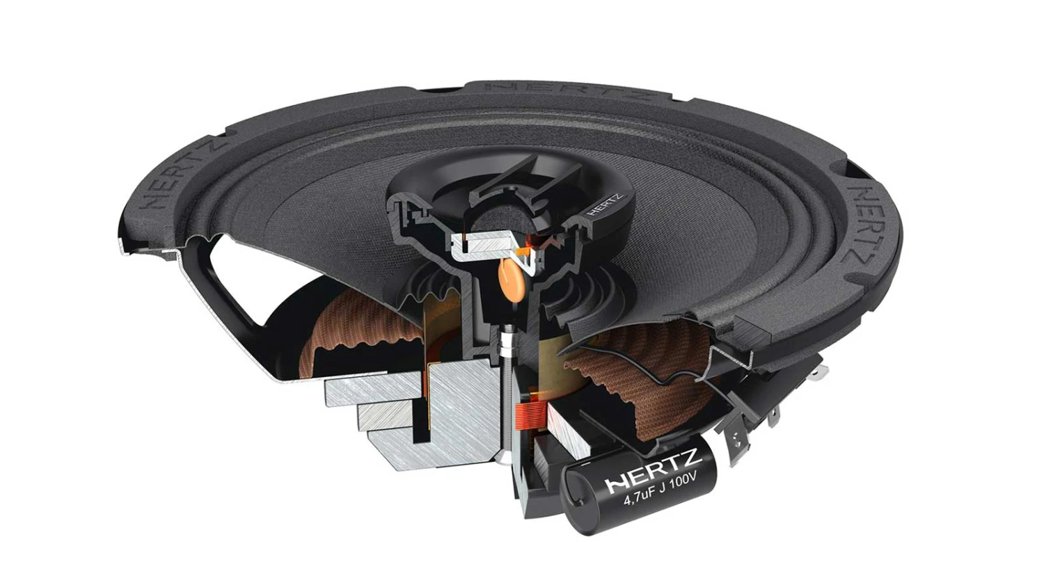 - Beispiellose Belastbarkeit durch die auf Polyamidformer gewickelte Doppelschicht-Kupferschwingspule.