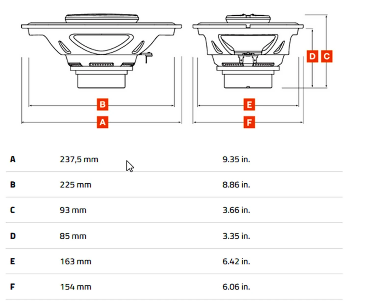 - 15x23cm (6×9″) Koaxial-Lautsprecher (260 W)