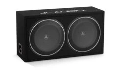 - Ausführung: Schwarzer, hochwertiger Autoteppich mit silbern gesticktem „JL AUDIO“ auf der Oberseite des Gehäuses. Zum Schutz des Subwoofers wird ein Stahlgittergitter mitgeliefert.