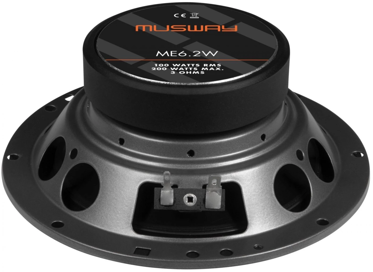 Die ME Lautsprecher sind die Einstiegsmodelle von MUSWAY. Selbst diese sind schon mit kräftigen Magnetantrieben ausgestattet, die unter anderem eine hohe Belastbarkeit mit bis zu 200 Watt Musikleistung ermöglichen. Polypropylen-Membranen mit Gummisicken garantieren einen tiefen und kräftigen Bass und eine sehr hohe Langlebigkeit. Für ein optimales Abstrahlverhalten wurden in die Basslautsprecher von ME6.2C, ME5.2C und ME6.2W Phase-Plugs eingesetzt. Der 25 mm Gewebe-Neodym-Hochtöner hat nicht nur hervorragende Klangeigenschaften, sondern ist auch noch besonders flexibel einsetzbar, da der äußere Plastikring abnehmbar ist und sich dadurch der Durchmesser auf kompakte 43,5 mm verringert – passend für das Spiegeldreieck oder die A-Säule. Für einfache Verbaubarkeit sorgen die für den Hochton- und Basszweig getrennten Inline-Frequenzweichen, die kaum Platz beanspruchen.