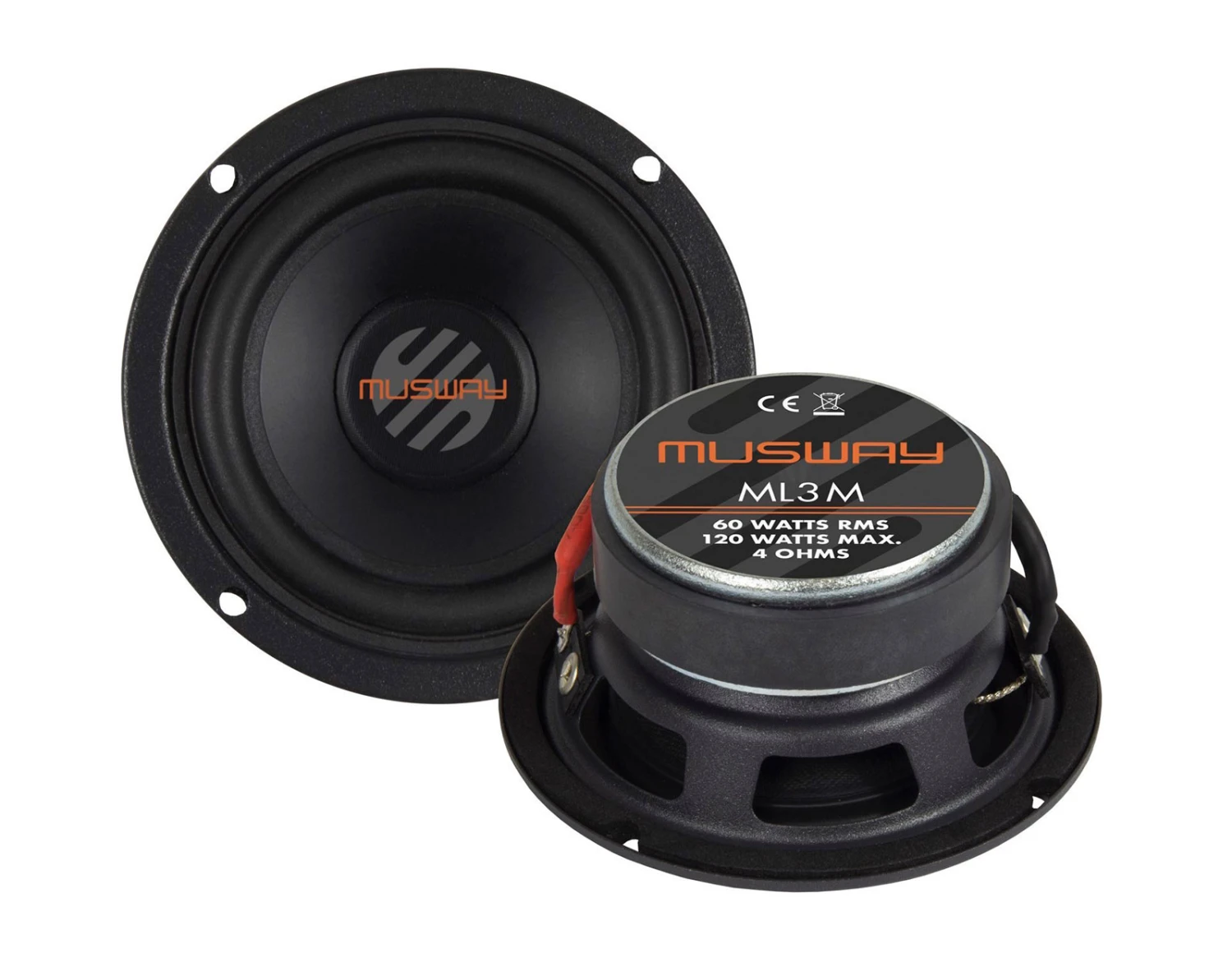 Mit der brandneuen ML Serie stellt Musway die preiswerten „Ableger“ der MG Lautsprecher vor. Diese sind nicht minder interessant, zumal bei der Konzipierung viele der optimierenden Technologien aus der teuren Serie übernommen wurden. In erster Linie unterscheiden sich die Lautsprecher durch die Verwendung günstiger Stahlkörbe und optisch weniger aufwendig bearbeiteten Magnete. Wer auf die teuren, im installierten Zustand eher unsichtbaren optischen Finessen verzichten kann, kommt mit den ML Systemen voll auf seine Kosten.