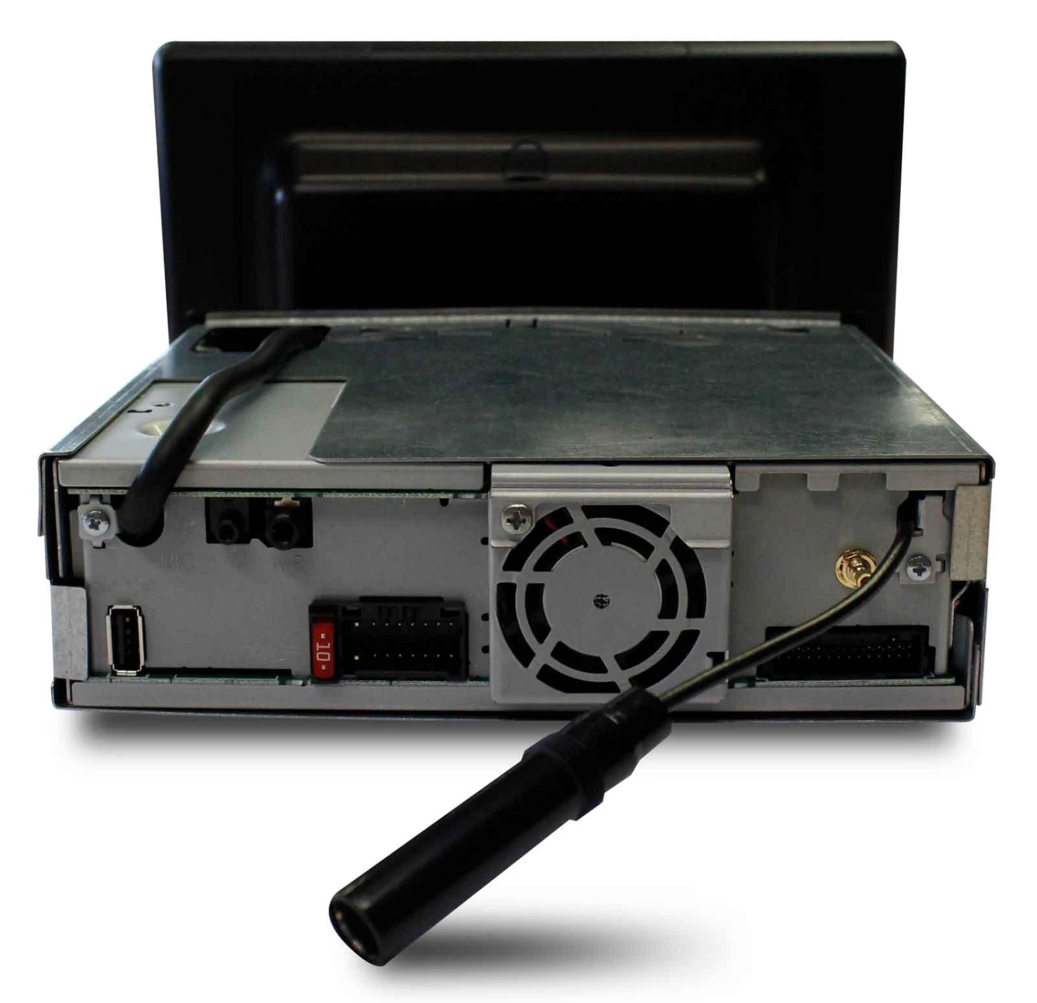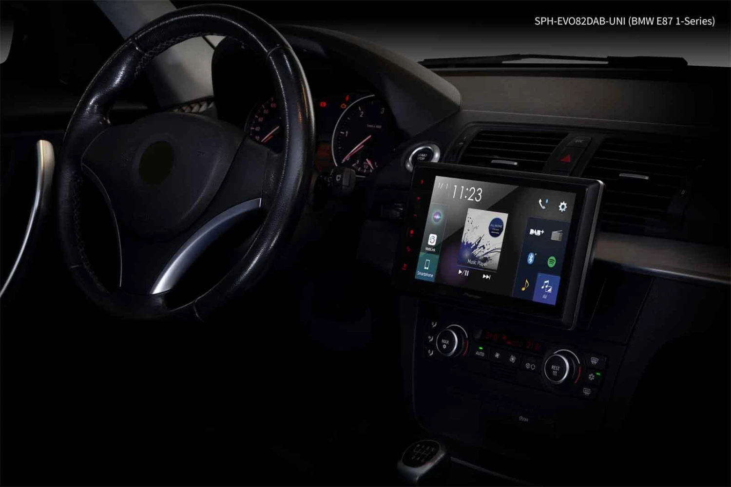 Mit dem SPH-EVO82DAB-UNIB-Einbausatz kann das Gerät außerdem in Tiefe verstellt werden. Die Verbindung mit Ihrem Fahrzeug wird über die